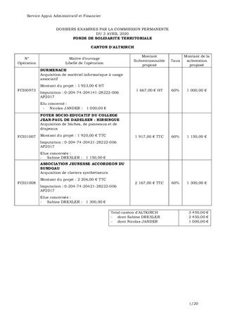 Il est proposé d’approuver la troisième programmation pour l’année 2020 des aides à attribuer à 49 projets dans le cadre du Fonds de Solidarité Territoriale (FST), pour un montant total de 168 359 €. Ce rapport a fait l’objet d’un avis favorable de la Commission Patrimoine Immobilier, Actions et Territoires réunie le 13 mars 2020.