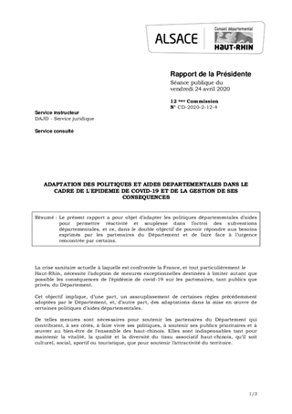 ADAPTATION DES POLITIQUES ET AIDES DEPARTEMENTALES DANS LE CADRE DE L'EPIDEMIE DE COVID-19 ET DE LA GESTION DE SES CONSEQUENCES