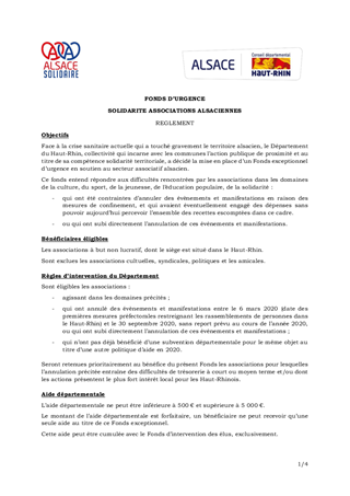 FONDS D'URGENCE SOLIDARITE ASSOCIATIONS ALSACIENNES