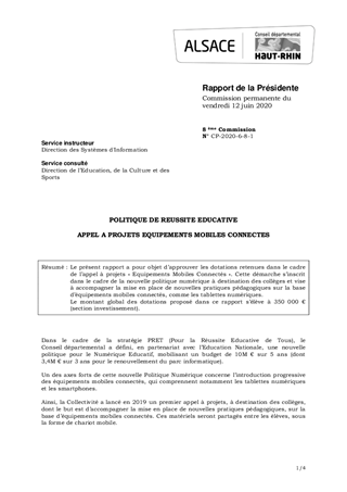 POLITIQUE DE REUSSITE EDUCATIVEAPPEL A PROJETS EQUIPEMENTS MOBILES CONNECTES