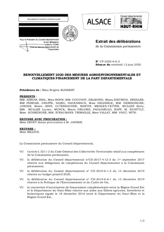 RENOUVELLEMENT 2020 DES MESURES AGROENVIRONNEMENTALES ET CLIMATIQUES FINANCEMENT DE LA PART DEPARTEMENTALE