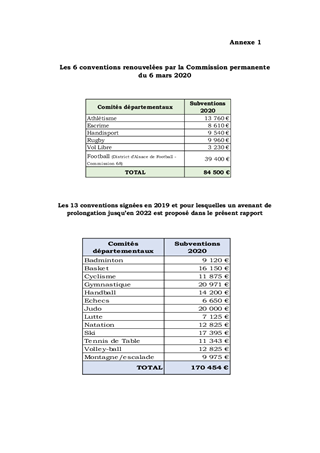 Le présent rapport a pour objet de vous proposer la signature d’un avenant aux conventions de partenariat signées en 2019 avec 13 Comités départementaux sportifs visant leur prolongation jusqu’en 2022. La Commission Sports et Vie Associative (9ème) a donné un avis favorable le 5 juin 2020.