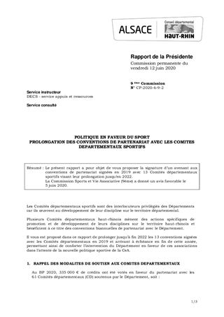 POLITIQUE EN FAVEUR DU SPORTPROLONGATION DES CONVENTIONS DE PARTENARIAT AVEC LES COMITES DEPARTEMENTAUX SPORTIFS