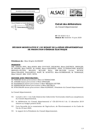 DÉCISION MODIFICATIVE N°1 DU BUDGET DE LA RÉGIE DÉPARTEMENTALE DE PRODUCTION D'ÉNERGIE ÉLECTRIQUE