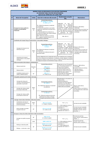 BAREMES DES REDEVANCES D'OCCUPATION DU DOMAINE PUBLIC ROUTIER DEPARTEMENTAL ET DES TARIFS D'INTERVENTIONS EXCEPTIONNELLES DES AGENTS DES SERVICES ROUTIERSCOMMUNS AUX DEPARTEMENTS DU BAS-RHIN ET DU HAUT-RHIN