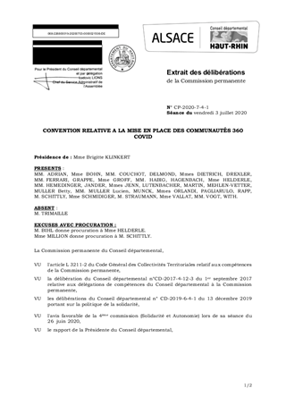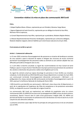 CONVENTION RELATIVE A LA MISE EN PLACE DES COMMUNAUTÉS 360 COVID