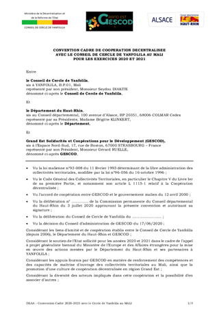 COOPERATION AVEC LE CERCLE DE YANFOLILA AU MALIPARTENARIAT 2020-2021 CONVENTIONS : CADRE, OPERATIONNELLE ET DE FINANCEMENT