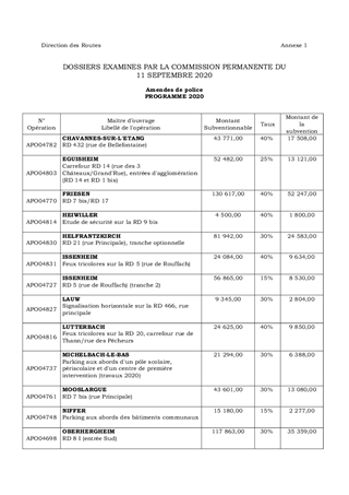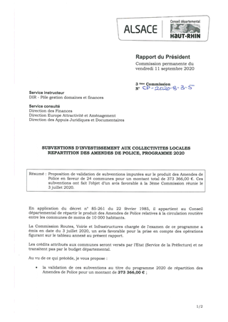 SUBVENTIONS D'INVESTISSEMENT AUX COLLECTIVITES LOCALESREPARTITION DES AMENDES DE POLICE, PROGRAMME 2020