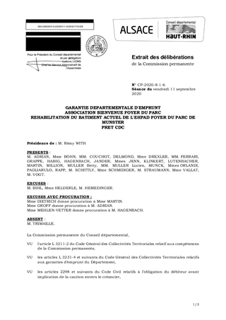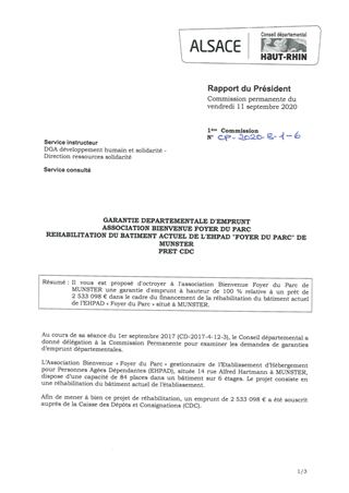 GARANTIE DEPARTEMENTALE D'EMPRUNTASSOCIATION BIENVENUE FOYER DU PARCREHABILITATION DU BATIMENT ACTUEL DE L'EHPAD FOYER DU PARC DE MUNSTERPRET CDC