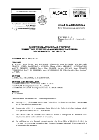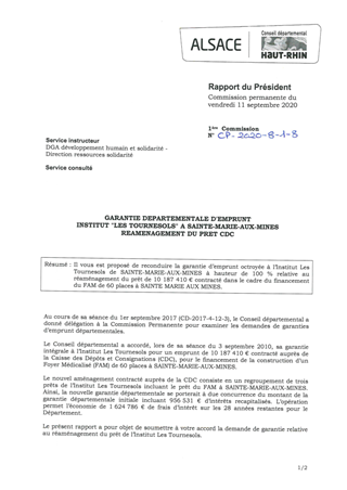 GARANTIE DEPARTEMENTALE D'EMPRUNTINSTITUT LES TOURNESOLS A SAINTE-MARIE-AUX-MINESREAMENAGEMENT DU PRET CDC