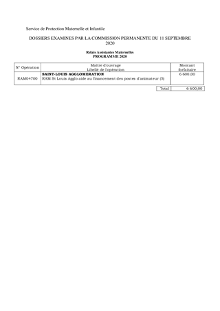 Il est proposé la mise en paiement de la subvention concernant le financement des 5 postes d'animateurs de 3 Relais Assistants Maternels gérés par Saint-Louis Agglomération pour un montant total de 6 600 €.
