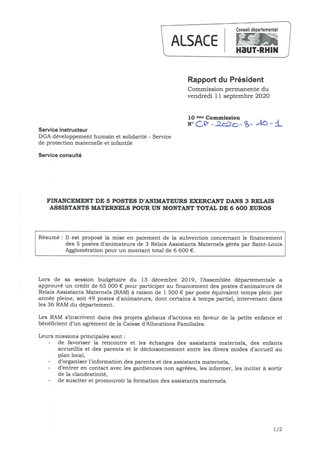 FINANCEMENT DE 5 POSTES D'ANIMATEURS EXERCANT DANS 3 RELAIS ASSISTANTS MATERNELS POUR UN MONTANT TOTAL DE 6 600 EUROS