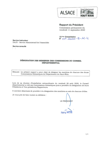 Le présent rapport a pour objet de désigner les membres de chacune des douze Commissions thématiques du Département du Haut-Rhin.