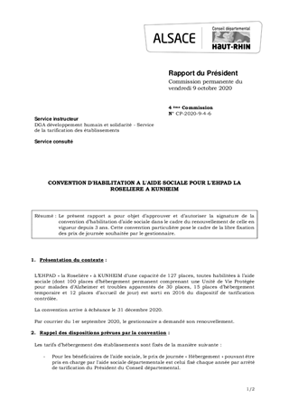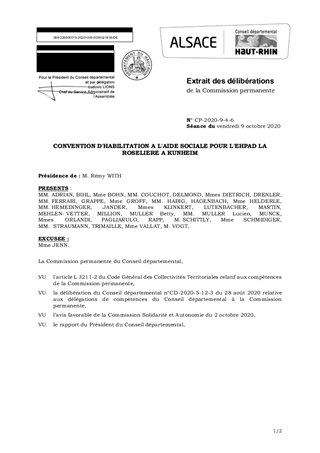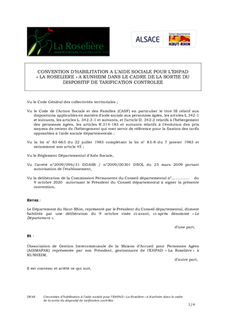 CONVENTION D'HABILITATION A L'AIDE SOCIALE POUR L'EHPAD LA ROSELIERE A KUNHEIM