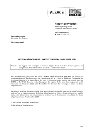 Ce rapport vise à adopter le nouveau régime fiscal de la taxe d'aménagement en complément de la délibération fiscale du 13 décembre 2019.