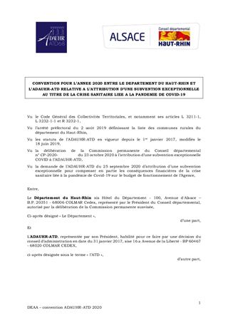 ADAUHR ATD 68CRISE SANITAIRE LIÉE À LA PANDÉMIE DE COVID-19SUBVENTION DE FONCTIONNEMENT EXCEPTIONNELLE