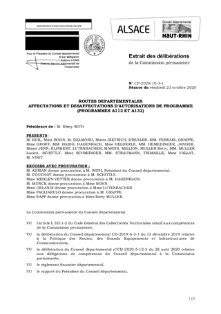 ROUTES DEPARTEMENTALESAFFECTATIONS ET DESAFFECTATIONS D'AUTORISATIONS DE PROGRAMME(PROGRAMMES A112 ET A132)