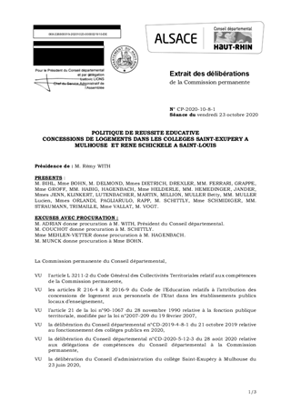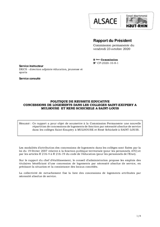 POLITIQUE DE REUSSITE EDUCATIVE CONCESSIONS DE LOGEMENTS DANS LES COLLEGES SAINT-EXUPERY A MULHOUSE ET RENE SCHICKELE A SAINT-LOUIS