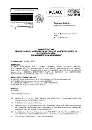 COMMUNICATIONDELEGATION DU PRESIDENT EN MATIERE DE MARCHES PUBLICS ETD'ACCORDS-CADRESINFORMATION DE L'ASSEMBLEE