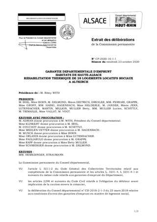 GARANTIE DEPARTEMENTALE D'EMPRUNTHABITATS DE HAUTE-ALSACEREHABILITATION THERMIQUE DE 28 LOGEMENTS LOCATIFS SOCIAUXA ALTKIRCH
