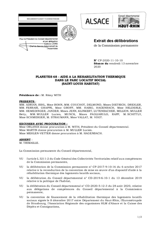 PLANETES 68 - AIDE A LA REHABILITATION THERMIQUEDANS LE PARC LOCATIF SOCIAL(SAINT-LOUIS HABITAT)