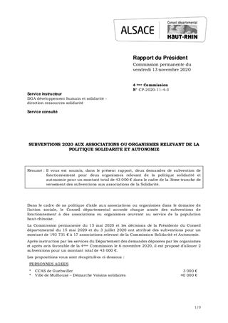 SUBVENTIONS 2020 AUX ASSOCIATIONS OU ORGANISMES RELEVANT DE LA POLITIQUE SOLIDARITE ET AUTONOMIE