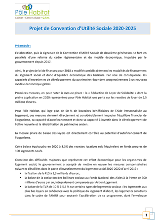 POLITIQUE DE L'HABITAT - CONVENTION D'UTILITE SOCIALE DE POLE HABITAT COLMAR-CENTRE ALSACE