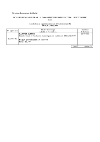 Il vous est soumis, dans le présent rapport, une demande de subvention de fonctionnement pour l’association CARITAS relevant de la politique solidarité, famille, insertion et logement pour un montant de 20 000 € dans le cadre de la 3ème tranche de versement des subventions aux associations de la Solidarité. Par ailleurs, il y a lieu de désigner les représentants du Conseil départemental pour siéger au sein des instances de 2 organismes extérieurs, conformément à leurs statuts.