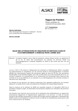 le présent rapport a pour objet de présenter comme chaque année, en application de la loi, le bilan des autorisations de création de services d’aide et d’accompagnement à domicile déposées en 2020 et des suites qui leur ont été données.