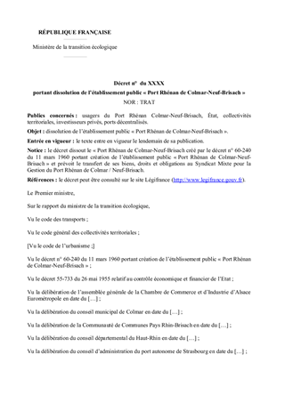 DISSOLUTION ET LIQUIDATION DE L'ÉTABLISSEMENT PUBLIC PORT RHÉNAN DE COLMAR/NEUF-BRISACH