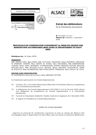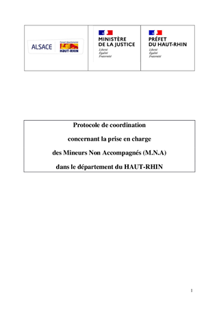 PROTOCOLE DE COORDINATION CONCERNANT LA PRISE EN CHARGE DES MINEURS NON ACCOMPAGNES (MNA) DANS LE DEPARTEMENT DU HAUT-RHIN