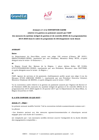 FONDS FEADER : AVENANTS AUX CONVENTIONS RELATIVES À LA GESTION EN PAIEMENT ASSOCIÉ ET EN PAIEMENT DISSOCIÉ AVEC L'ASP POUR LA PROGRAMMATION 2014-2020