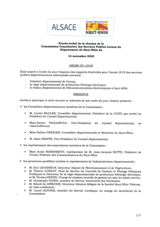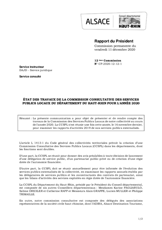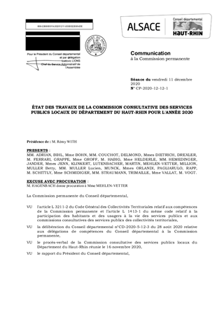 ÉTAT DES TRAVAUX DE LA COMMISSION CONSULTATIVE DES SERVICESPUBLICS LOCAUX DU DÉPARTEMENT DU HAUT-RHIN POUR L'ANNÉE 2020