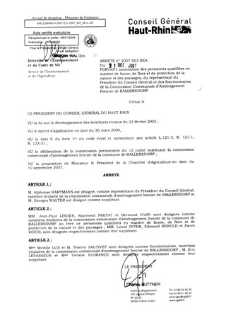 portant nomination des personnes qualifiées en matière de faune, de flore et de protection de la nature et des paysages, du représentant du Président du Conseil Général et des fonctionnaires de la Commission Communale d'Aménagement Foncier de BALLERSDORF.