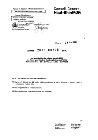 portant fixation du prix de journée 2008 du foyer pour adultes handicapés graves (FAHG) de l'association "Lieu de Vie Arc en Ciel" à AUBURE. Resumé Pièces jointes ARRETE Assemblée : Non défini Date : 29/05/2008 Rapporteur : Non défini Collectivité : Conseil départemental du Haut-Rhin Direction : Non défini Service : Service de la Tarification des Etablissements Domaine : Prix de Journée Commission :
