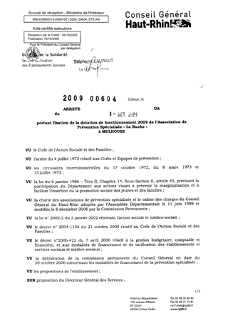 portant fixation de la dotation de fonctionnement 2009 de l'association de prévention spécialisée "La Ruche" à MULHOUSE. Resumé Pièces jointes ARRETE Assemblée : Non défini Date : 01/10/2009 Rapporteur : Non défini Collectivité : Conseil départemental du Haut-Rhin Direction : Non défini Service : Direction de l'Autonomie Domaine : Dotations financières Commission :