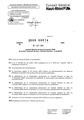 portant fixation du prix de journée 2009 du service d'accueil de jour "Gustave Stricker" à ILLZACH. Resumé Pièces jointes ARRETE Assemblée : Non défini Date : 08/10/2009 Rapporteur : Non défini Collectivité : Conseil départemental du Haut-Rhin Direction : Non défini Service : Direction de l'Autonomie Domaine : Prix de Journée Commission :