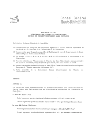 fixant les niveaux de loyers intermédiaires en cas de conventionnement avec travaux. Resumé Pièces jointes ARRETE Assemblée : Non défini Date : 16/12/2009 Rapporteur : Non défini Collectivité : Conseil départemental du Haut-Rhin Direction : Non défini Service : Service Habitat et Solidarités Territoriales Domaine : Autres (non classés) Commission :