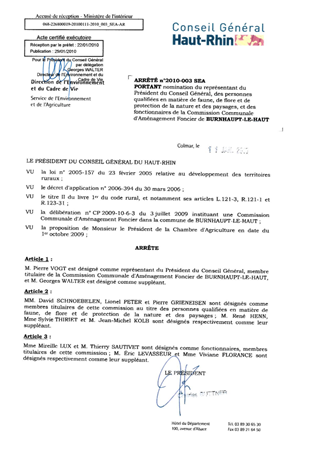 portant nomination du représentant du Président du Conseil Général, des personnes qualifiées en matière de faune, de flore et de protection de la nature et des paysages, et des fonctionnaires de la Com. Communale d'Aménagem. Foncier de BURNHAUPT-LE-HAUT.