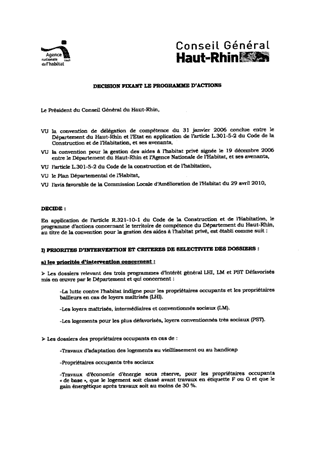 fixant le programme d'actions. Resumé Pièces jointes ARRETE Assemblée : Non défini Date : 29/04/2010 Rapporteur : Non défini Collectivité : Conseil départemental du Haut-Rhin Direction : Non défini Service : Service Habitat et Solidarités Territoriales Domaine : Autres (non classés) Commission :