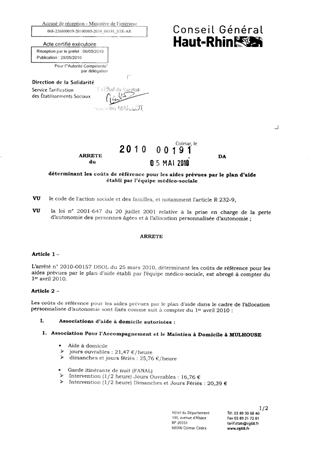 déterminant les coûts de référence pour les aides prévues par le plan d'aide établi par l'équipe médico-sociale. Resumé Pièces jointes ARRETE Assemblée : Non défini Date : 05/05/2010 Rapporteur : Non défini Collectivité : Conseil départemental du Haut-Rhin Direction : Non défini Service : Direction de l'Autonomie Domaine : Autres (non classés) Commission :