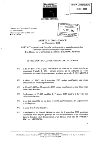 Portant organisation de l'enquête publique relative au déclassement et au classement dans le domaine privé départemental, d'un délaissé sur le territoire de la commune d'HOHROD RD 5 bis I Resumé Pièces jointes ARRETE Assemblée : Non défini Date : 30/09/2002 Rapporteur : Non défini Collectivité : Conseil départemental du Haut-Rhin Direction : Non défini Service : Service du Patrimoine et du droit des Sols Domaine : Déclassement de voirie Commission :