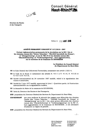portant réglementation permanente de la circulation sur la RD 1 bis et les chemins ruraux dits "Untere Talaecker", "Oberfeld Innenhalb der Strasse", et "Altengertenweg", et sur la RD 14 et les chemins ruraux dits "Oberstribicherweg" et "Vordersundgassweg"