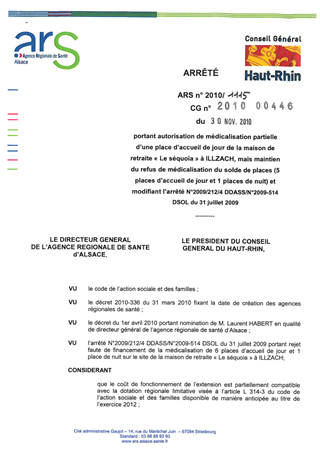 portant autorisation de médicalisation partielle d'une place d'accueil de jour de la maison de retraite "Le Séquoïa" à ILLZACH, mais maintien du refus de médicalisation du solde de places (5 places d'accueil de jour et 1 place de nuit) et modifiant l'arrê