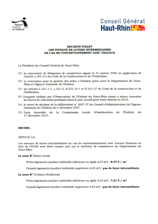 fixant les niveaux de loyers intermédiaires en cas de conventionnement avec travaux. Resumé Pièces jointes ARRETE Assemblée : Non défini Date : 13/01/2011 Rapporteur : Non défini Collectivité : Conseil départemental du Haut-Rhin Direction : Non défini Service : Service Habitat et Solidarités Territoriales Domaine : Autres (non classés) Commission :