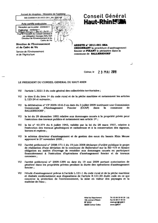 ordonnant la procédure d'aménagement foncier et fixant le périmètre dans la commune de BALLERSDORF. Resumé Pièces jointes ARRETE Assemblée : Non défini Date : 23/05/2011 Rapporteur : Non défini Collectivité : Conseil départemental du Haut-Rhin Direction : Non défini Service : Direction de l'Environnement et du Cadre de Vie Domaine : Autres (non classés) Commission :