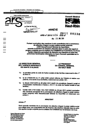 portant nomination des membres à voix consultative de la commission de sélection d'appel à projet médico-social conjoints "ARS Alsace/Conseil Général du Haut-Rhin" amenée à examiner les dossiers déposés dans le cadre des appels à projets conjoints pour la