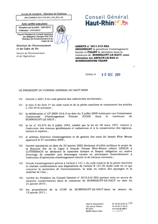 ordonnant la procédure d'aménagement foncier et fixant le périmètre dans la commune de BURNHAUPT-LE-HAUT, avec extension sur ASPACH-LE BAS et SCHWEIGHOUSE-THANN. Resumé Pièces jointes ARRETE Assemblée : Non défini Date : 30/12/2011 Rapporteur : Non défini Collectivité : Conseil départemental du Haut-Rhin Direction : Non défini Service : Direction de l'Environnement et du Cadre de Vie Domaine : Autres (non classés) Commission :