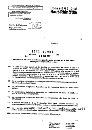 déterminant les coûts de référence pour les aides prévues par le plan d'aide établi par l'équipe médico-sociale. Resumé Pièces jointes ARRETE Assemblée : Non défini Date : 23/01/2012 Rapporteur : Non défini Collectivité : Conseil départemental du Haut-Rhin Direction : Non défini Service : Direction de l'Autonomie Domaine : Dotations financières Commission :