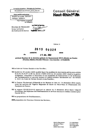 portant fixation de la dotation globale de financement 2013 allouée au Centre d'Action Médico-Sociale Précoce "Les Acacias" à ILLZACH. Resumé Pièces jointes ARRETE Assemblée : Non défini Date : 29/07/2013 Rapporteur : Non défini Collectivité : Conseil départemental du Haut-Rhin Direction : Non défini Service : Direction de l'Autonomie Domaine : Dotations financières Commission :